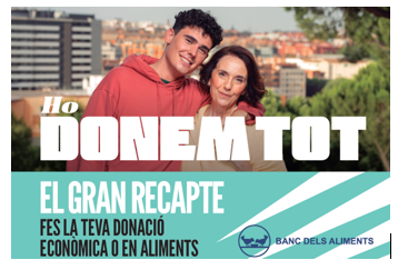 Los Bancos de Alimentos de Cataluña impulsan la 17ª edición de la campaña solidaria con el eslogan “Ho donem tot”, destinada a dar apoyo a las familias vulnerables para cubrir sus necesidades nutricionales mediante donaciones voluntarias de alimentos básicos y a sensibilizar a la sociedad sobre la pobreza alimentaria en Cataluña.