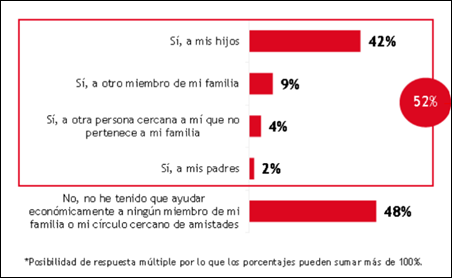 · También ofrecen soporte financiero a padres (2%), otros miembros de la familia (9%), y otras personas cercanas (4%).