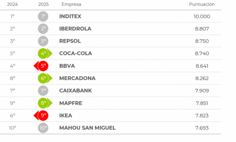 Por decimoquinto año consecutivo, Inditex se alza con la medalla de oro, consolidando un liderazgo histórico que parece no tener fin. El podio de honor lo completan Iberdrola (2º) y Repsol (3º), tres gigantes que han sabido adaptar su propuesta de valor a las exigencias de un Talento que ya no solo busca un salario, sino un propósito y flexibilidad. El «top 10» lo completan marcas icónicas como Coca Cola, BBVA, Mercadona, CaixaBank, Mapfre, Ikea y Mahou San Miguel.