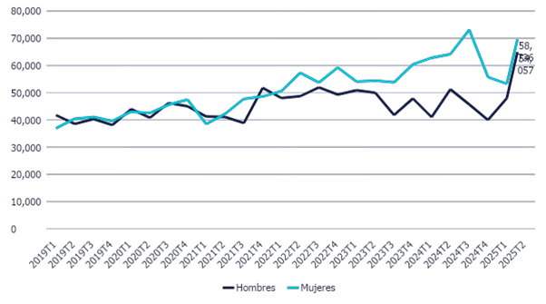 En el segundo trimestre de 2025, el peso del empleo masculino en la industria aumentó con un alza interanual del 5,5%, mientras que el femenino se desplomó un 8,5%.